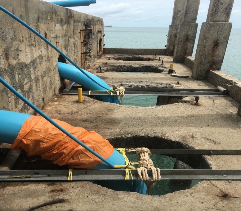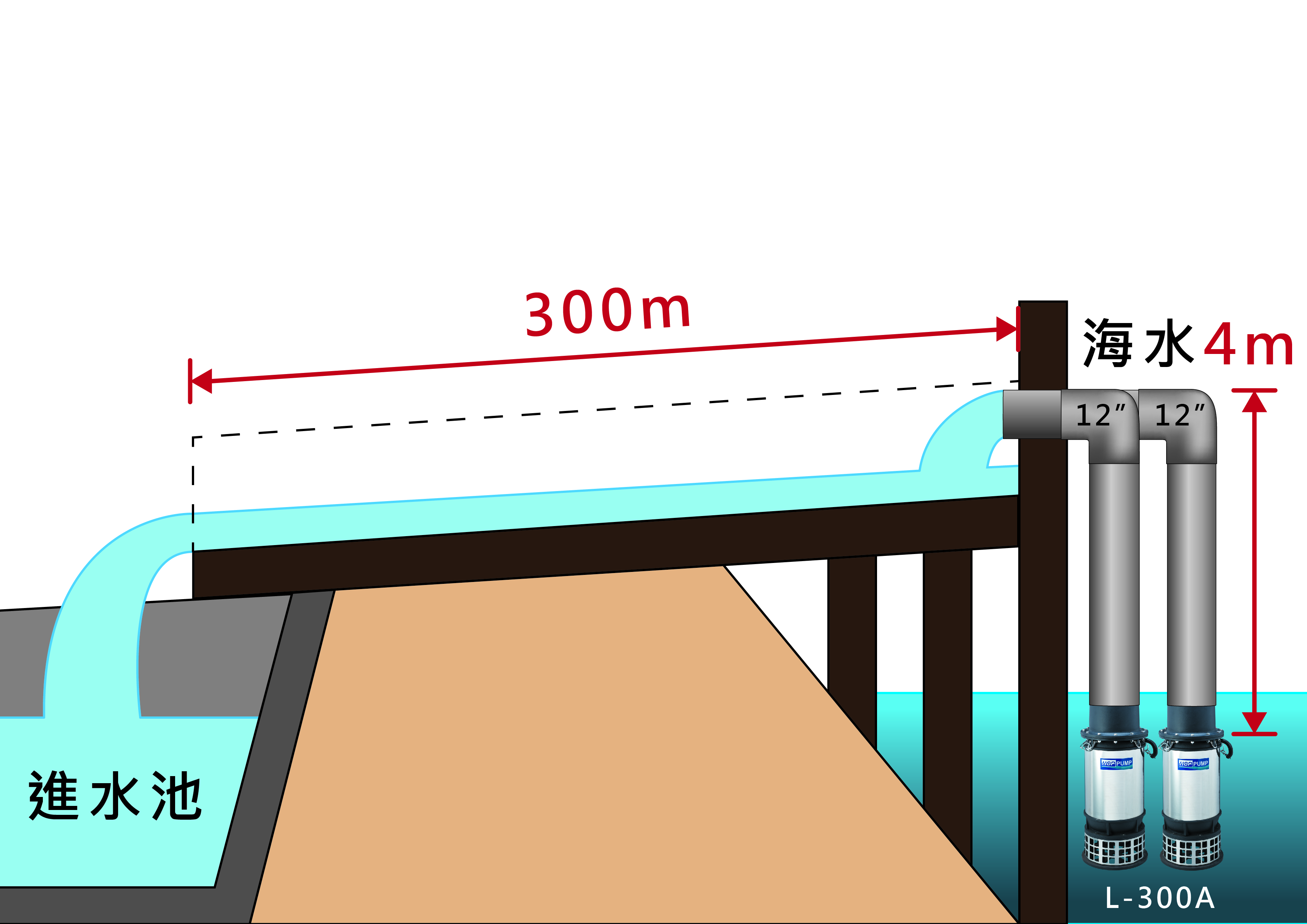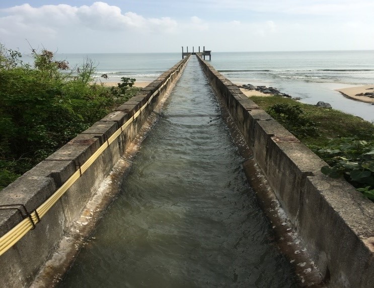 宋卡府是泰国的重要港口和南部沿海省份,也是通向新加坡和马来西亚的南大门,其首府合艾市是南部商业、交通、经济快速增长的中心。目前泰国虾制品年产量约50万吨,养虾面积约80000公顷,宋卡府是泰国前5大主要产虾地区之一。本案需将沿岸海水抽至4公尺高,利用自然流将海水输送至300公尺远的虾场,客户原本使用4台22吋50HP它牌的轴流泵,但因虾场水处理流程改变,所需求水量降低,经河见专业人员现场勘查评估后,选用L大排水泵浦系列,仅安装2台L-300A泵浦,15HPx12”,即满足虾场进流用水之需求,进而节省电费达到省电效果。